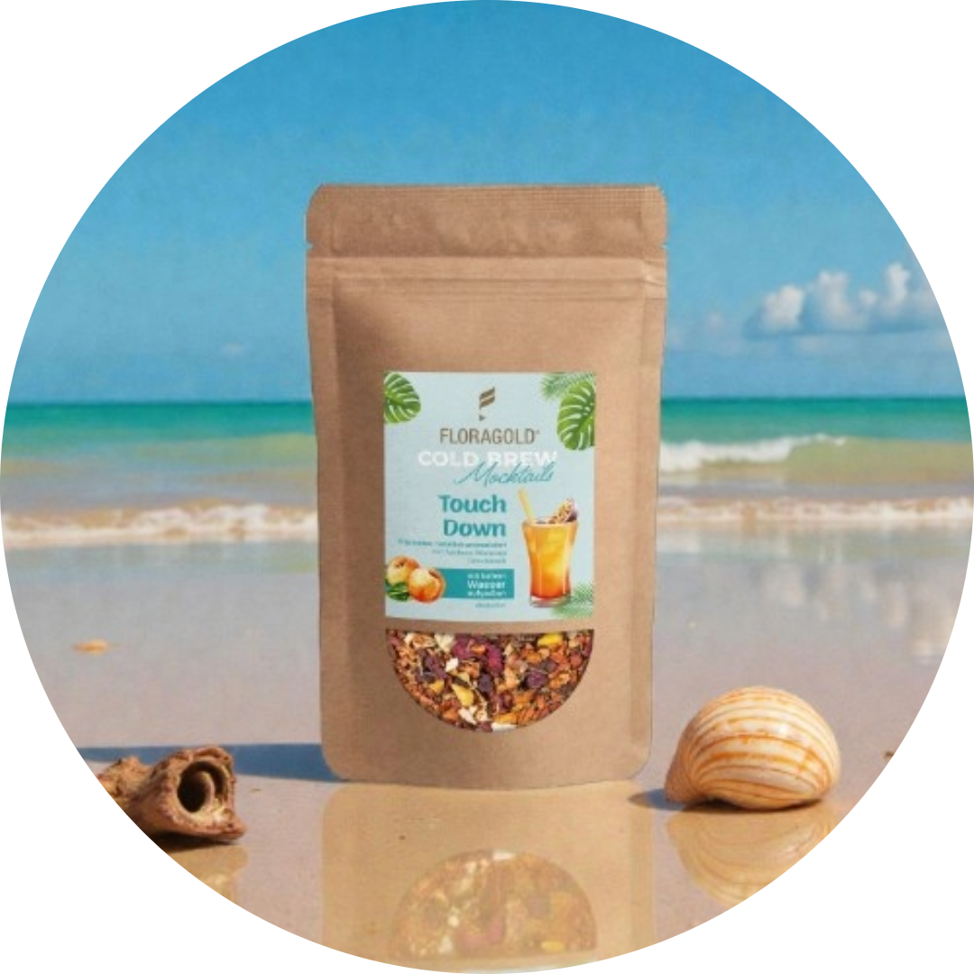 Fruchtig, exotisch und herrlich erfrischend: Unser Cold Brew Touch Down verbindet die süße Saftigkeit von Aprikose mit der spritzigen Frische der Maracuja. Das Ergebnis ist ein leichter, fruchtiger Cold Brew Tee, der sofort Sommer- und Urlaubsfeeling ins Glas bringt – ganz ohne Zuckerzusatz und ohne künstliche Aromen.