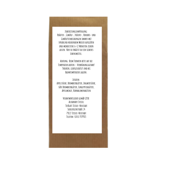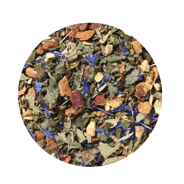 Süße Apfelstücke und süße Brombeerblätter runden die Mischung harmonisch ab. Kornblumenblüten setzen nicht nur optische Akzente, sondern machen diese Kräuterteemischung auch zu einem Genuss für alle Sinne – ganz ohne zugesetztes Aroma.